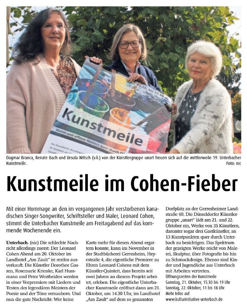 > Kunstmeile im Cohen-Fieber